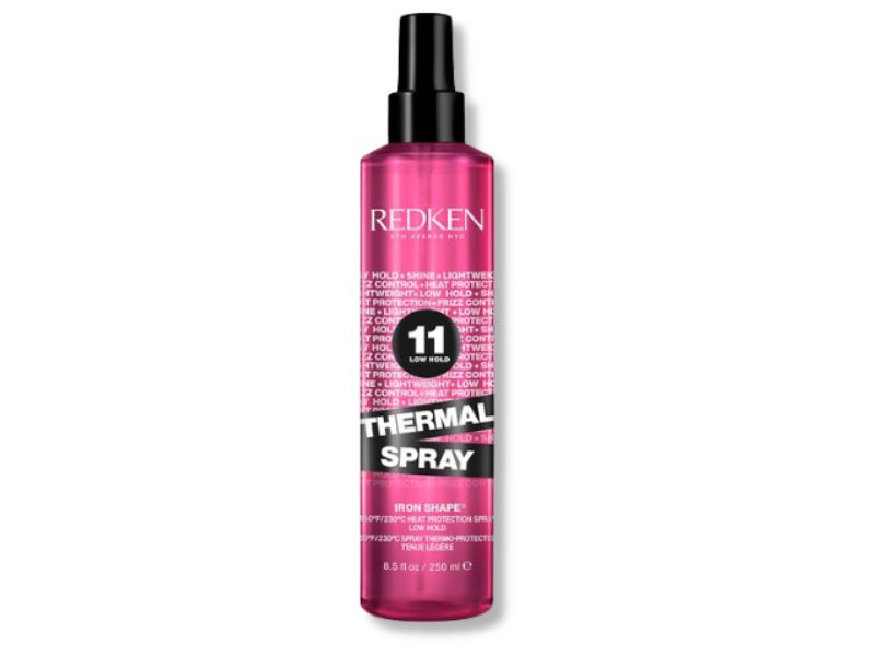 Redken’s Thermal Spray 11 Low Hold is a thermal setting mist that provides clean, lightweight hold and heat protection for up to 450 degrees while adding shine and frizz control. Formulated with cranberry seed oil and ceramides, Redken’s Heat Restyling Technology features a unique formula that protects the hair cuticle from damage and allows you to change your style between washes by applying heat to reactivate the formula.
